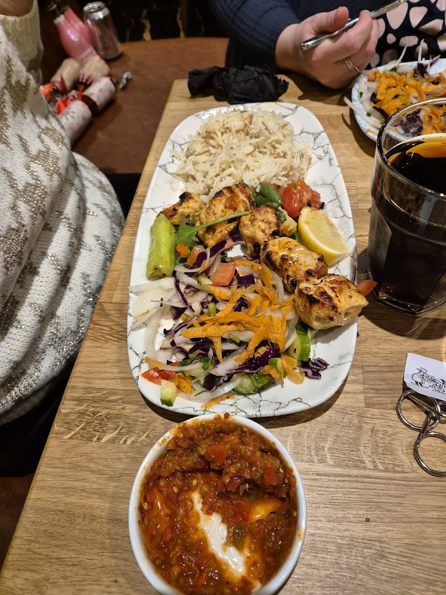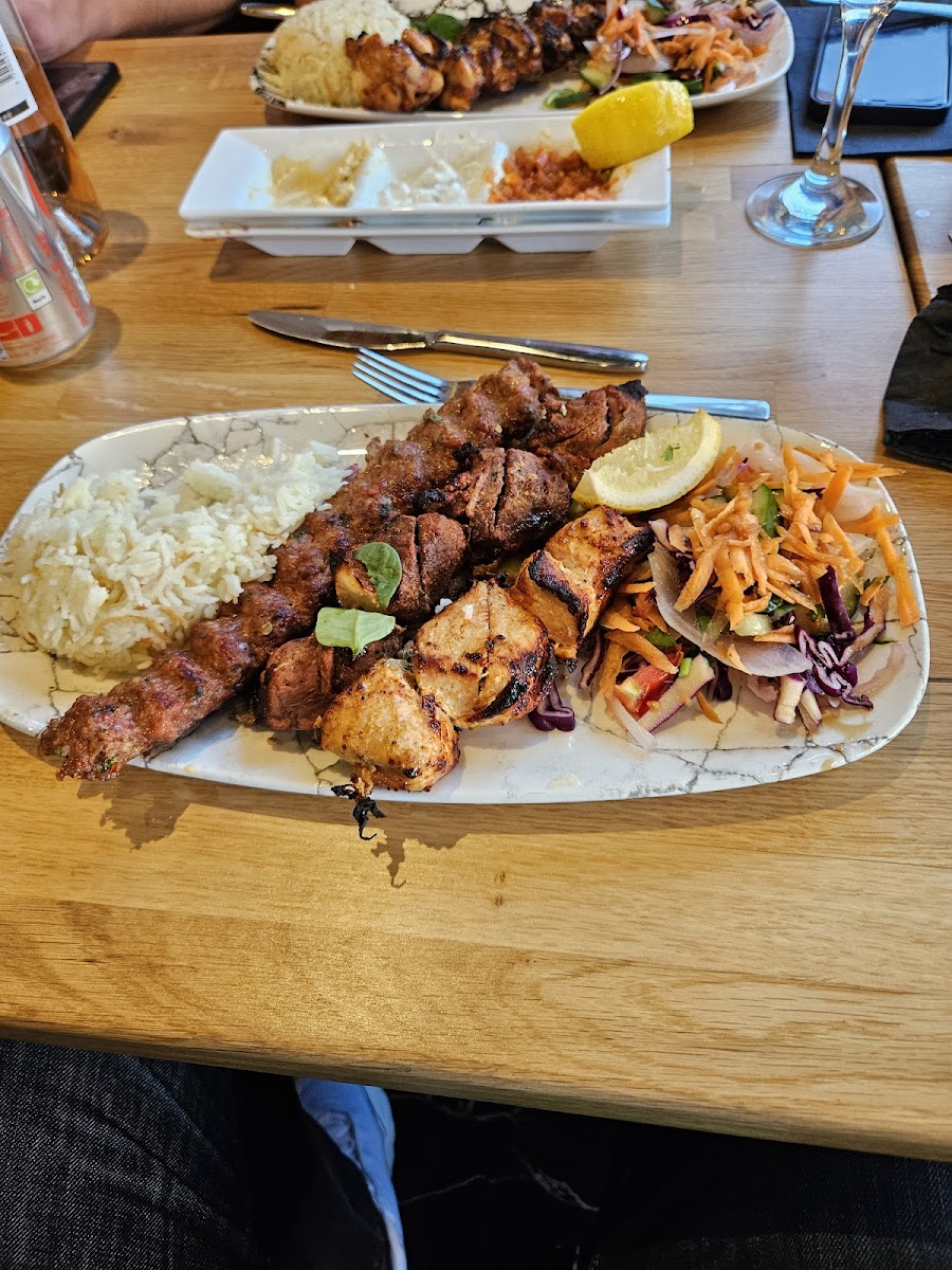 I would give more stars if I could! Me and my husband got a cosy table for two on a busy Saturday night. We loved the music and the restaurant smelled amazing. The first thing I noticed is how friendly and attentive the staff were. We ordered the platter for two and the bread which came as a started was out of this world fresh tasting and fluffy. The meat was juicy and seasoned to perfection which left me thinking about eating it every day. I honestly think this place is my new favourite restaurant and will be going back often. We ordered desert, baklava with ice-cream. The portions were perfect and service was quick and effortless. We both had a really positive experience so thank you to all the staff, front and back of house.