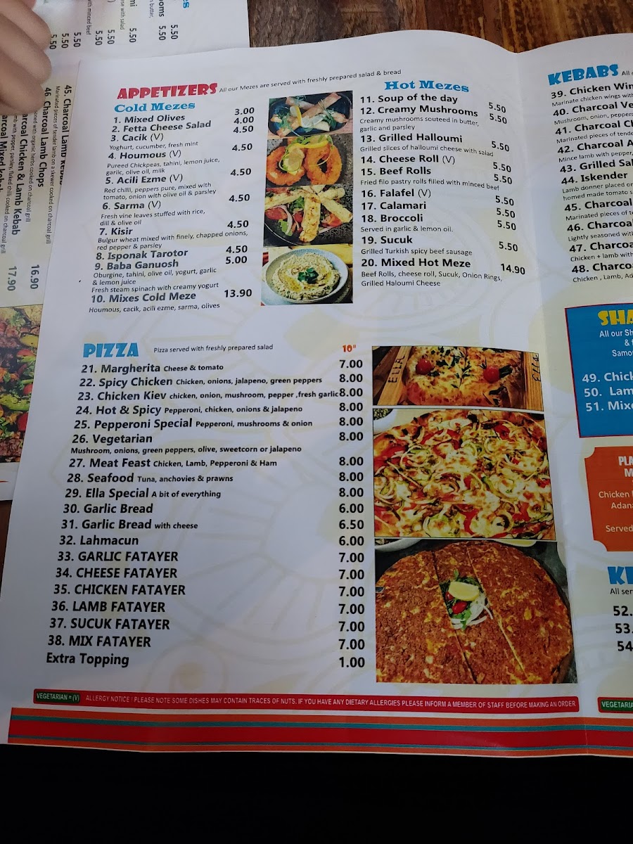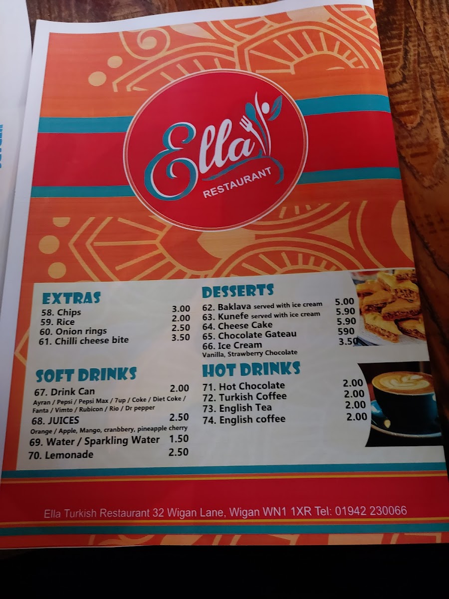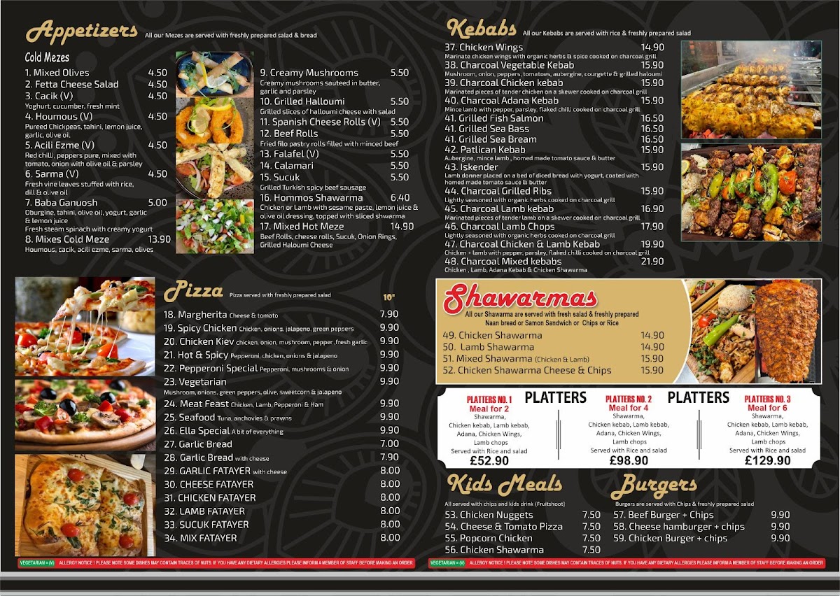 The menu at ELLA Turkish Restaurant and Takeaway offers a relaxed and approachable selection of traditional Turkish dishes, designed for sharing and savoring in a casual setting. Guests can enjoy a variety of kebabs, mixed platters, and meze options that complement the warm and inviting atmosphere of the restaurant.